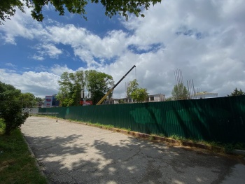 На заборе неизвестного строительного объекта, о котором редакция Керчь.ФМ писала в апреле этого года, появился технический паспорт объекта, а за забором активно работает строительная техника, наращивая количество арматуры.