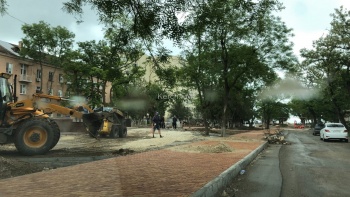 Активные работы начались на Бульваре пионеров в Керчи. Так, с утра 3 июня здесь пыльно: рабочие укладывают плитку на тротуарах, - передает Керчь.ФМ.