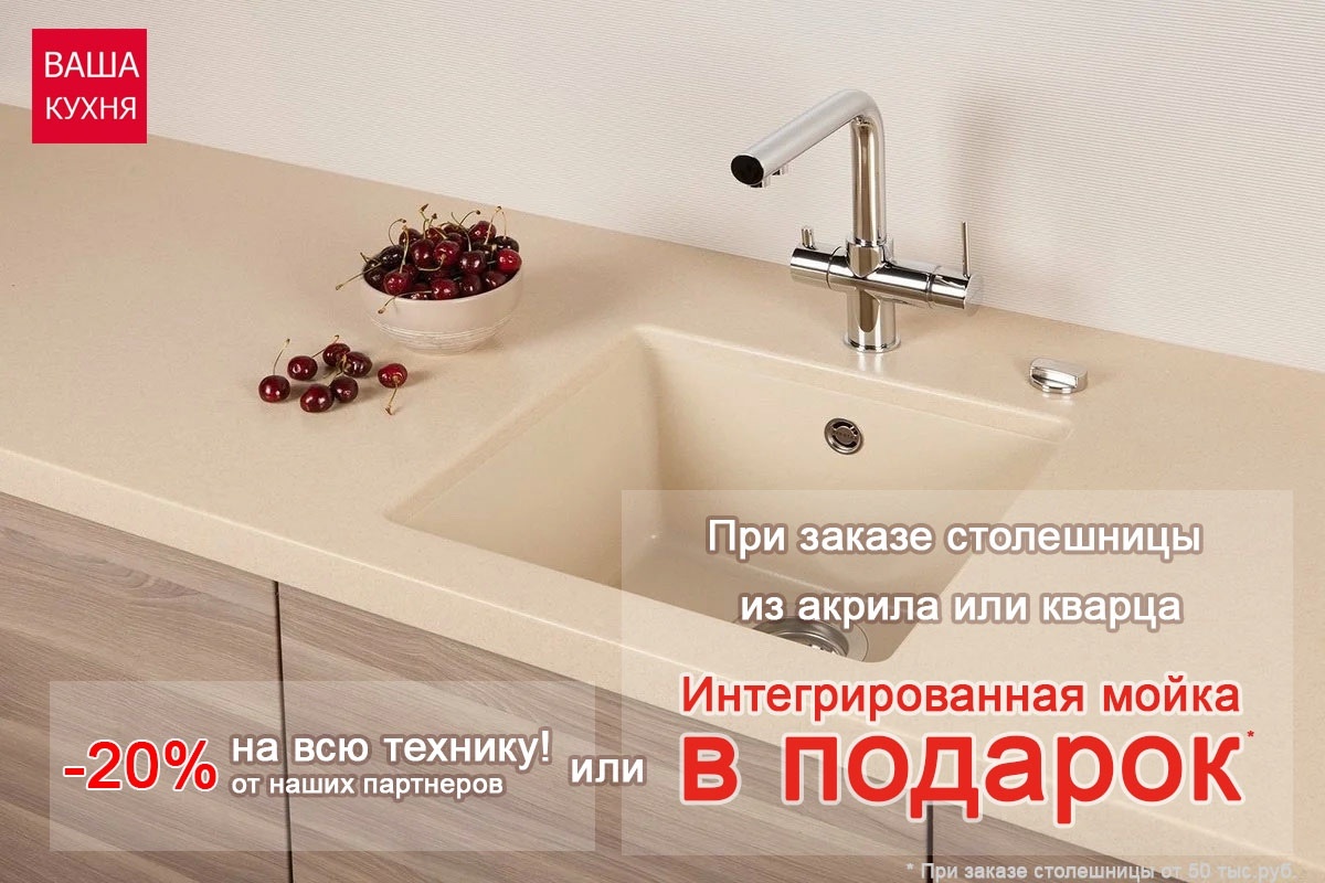 «Ваша Кухня»: интегрированная мойка в подарок и техника со скидкой 20%!