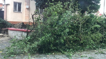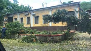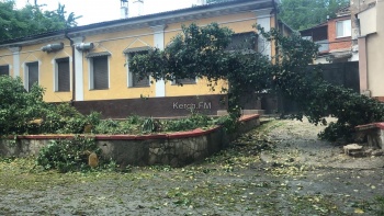 В Керчи на улице Театральной упало большое дерево. К счастью, машины не пострадали, - передает Керчь.ФМ.
