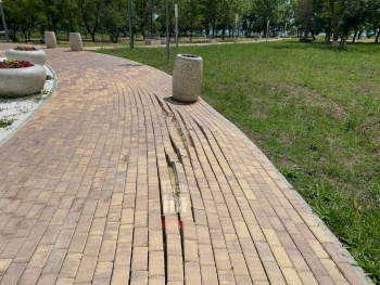 Напротив Крымского моста в Комсомольском парке Керчи провалилась тротуарная плитка
