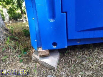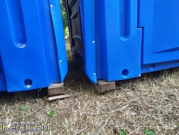 В редакцию Керчь.ФМ постоянный читатель прислал фотографии криво установленного биотуалета в Молодёжном парке, который в ветренную погоду шатает из стороны в сторону.