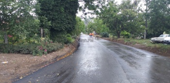 Работы по укладке асфальта на ул. Колхозной, которые на выходных велись и днем, и ночью, поутихли. На улице уложили две полосы первого слоя асфальта, - передает Керчь.ФМ.