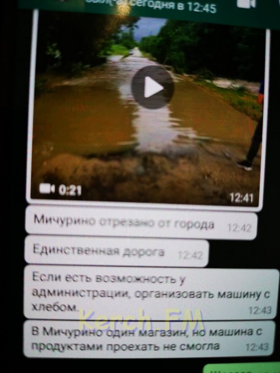 Из-за наводнения поселок не смогла проехать по единственной дороге машина с продуктами. Местные жители просят администрацию организовать подвоз хлеба, - передает Керчь.ФМ.