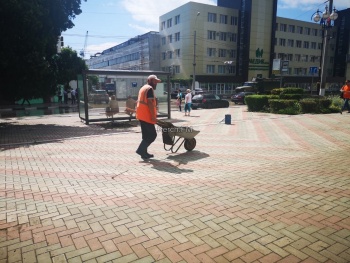 В 10 часов работы идут на проезжей части по ул. Свердлова, а также на Кирова, у здания администрации