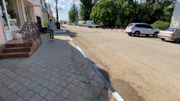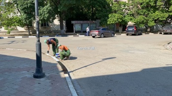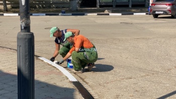 В Керчи на улице Пролетарской люди в спецодежде красили бордюры в бело-черный цвет, - передает Керчь.ФМ.