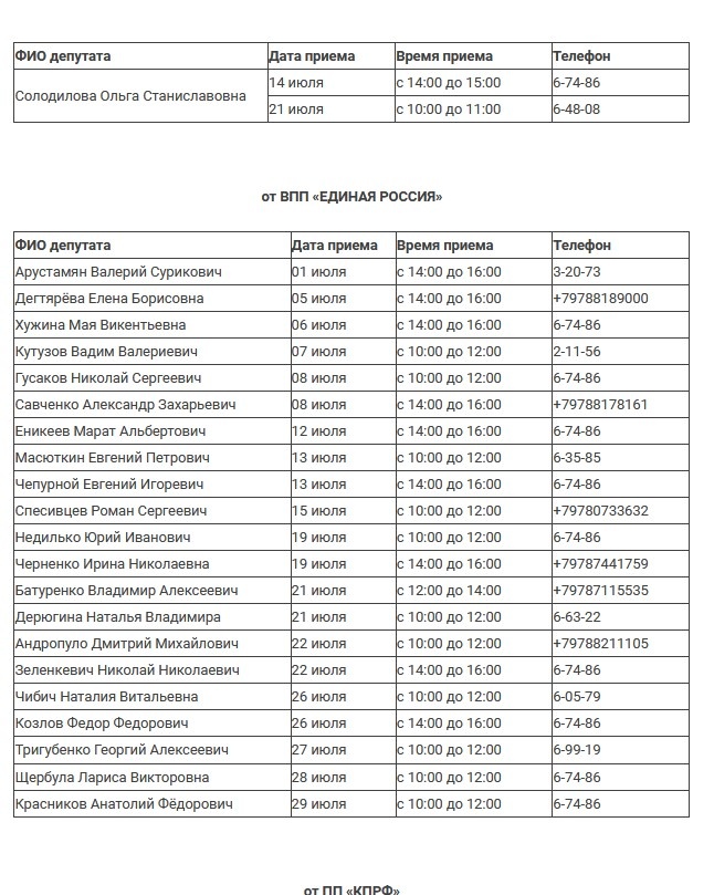 Пресс-служба горсовета Керчи сообщает время приема граждан в телефонном режиме депутатским корпусом Керченского городского совета 2 созыва в июле 2021 года, - передает Керчь.ФМ