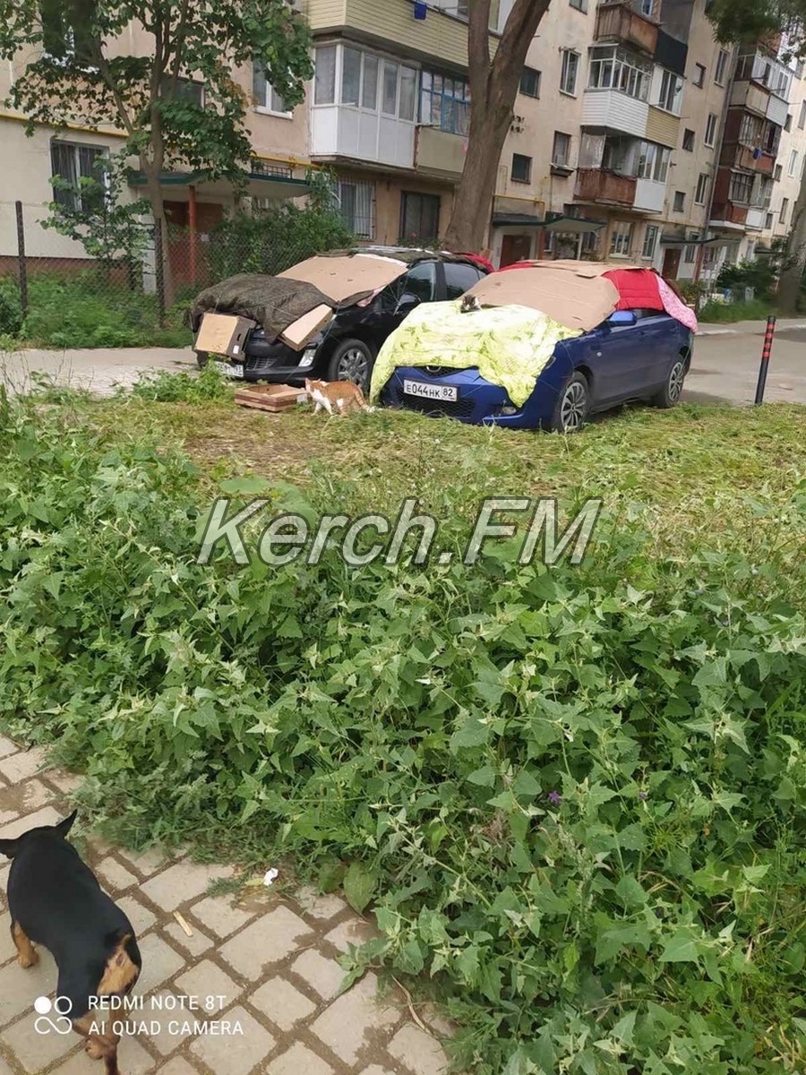 В Керчи готовятся к предстоящему ливню. Кто-то из предпринимателей поднял товар и оборудование на первых этажах в центре города, а кто-то решил спрятать авто в гаражи. Но есть и те, кто решил укутать машины всем, что нашли: одеяла, листы картона, коробки и доски пришли на помощь автовладельцам.