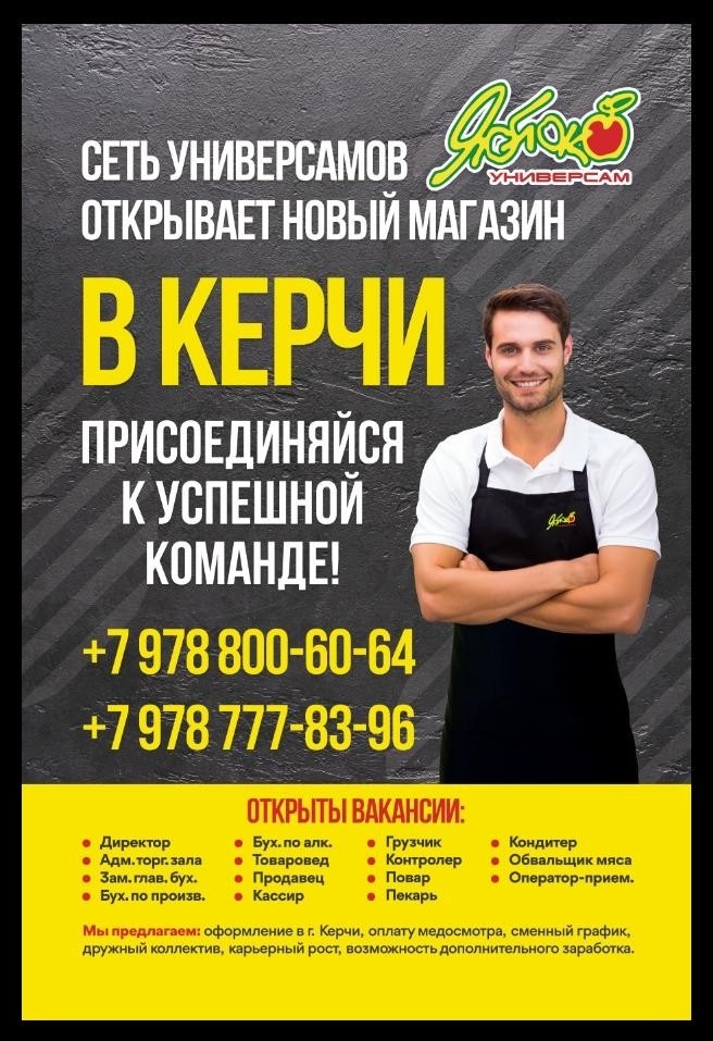 В г. Керчь открывается новый супермаркет «ЯБЛОКО»