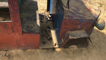 Теперь этот песок находится везде: и на качелях, и кораблике, песочнице и обуви всех, кто ступил на площадку. А вот ремонта или хотя бы демонтажа опасных конструкций здесь нет: ржавые опасные качели с торчащим железом, прогнившие машинки и опасная горка - все для наших детей.