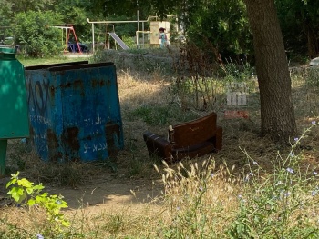 С соблюдением чистоты здесь тоже проблемы. Рухнувшую ветку дерева не убирают, а мусорный контейнер, которому дали неприятное прозвище, продолжает стоять "на голове".