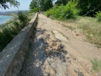 Здесь, можно сказать, собраны все типичные «керченские достопримечательности» в виде глубоких ям, как на тротуарах, так и на дороге, разбитые парапеты, разрытые участки дороги, камни и ветки, об которые можно споткнуться и заработать себе больничный, приземлившись на разбросанный щебень.