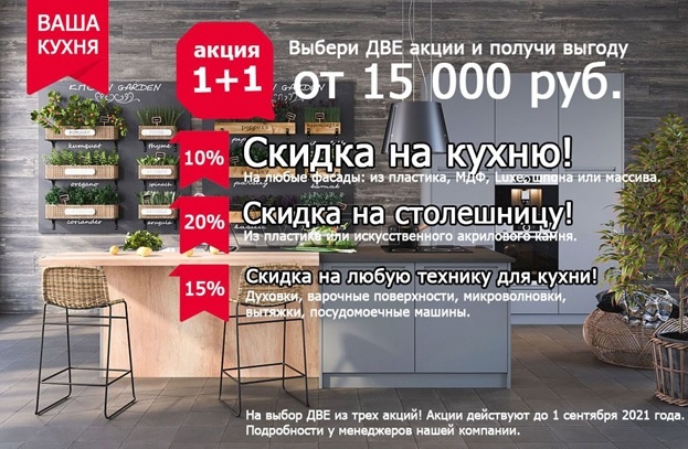 «Ваша кухня»: Акция 1+1: выбирайте две скидки из трех!