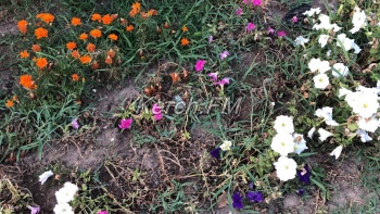 Так, видно, что цветы недавно поливали. Но видимо, избирательно. Потому что некоторые из них сильно посохшие.