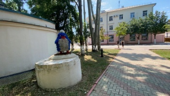 В центре Керчи на улице Кирова появилась новая инсталляция. Около здания администрация установили птичку, которая украшает канализационный люк, - передает Керчь.ФМ.