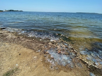 На пляже по улице Сморжевского на берег выбросило большое количество медуз. Помимо этого теперь на пляже стоит неприятный запах, который портит впечатление от отдыха. Медузы присутствуют как на берегу, так и у побережья, — передает Керчь.ФМ.