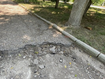 "Видимо по такому придется ходить детям в школу, попутно рассматривая траву, которая засохла и ветки, которые спилили еще давно и не убрали. Споткнуться в этом месте - запросто. А в случае если ребенок подвернет ногу или не дай бог сломает, то тут как раз рядом станция скорой помощи, правда до неё придется ползти. Месяц остается до начала учебного года, но все как разрушалось так и разрушается. Считаю, что пора в керченских школах начать преподавать траекторию передвижения по керченским разбитым тротуарам: в школе — теория, на улице — практика", — пишет читатель