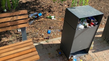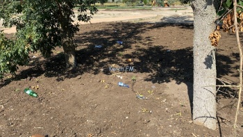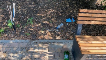 Но вот весь новый и красивый вид портят отдыхающие, которые раскидывают пустые бутылки по всему парку.