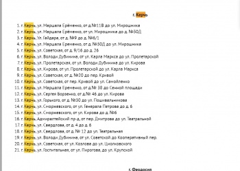1. г. Керчь, ул. Маршала Ерёменко, от д.№11В до ул. Мирошника
