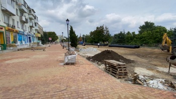 На обновленной пешеходной зоне установили фонари уличного освещения. На объекте продолжается укладка плитки, — передает Керчь.ФМ.