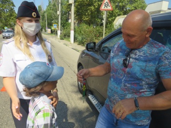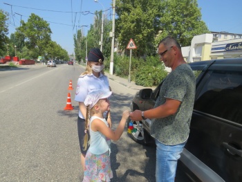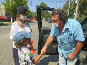 На одной из оживленных улиц города инспекторы останавливали проезжающие транспортные средства, а их юные помощники дарили водителям подарки, сделанные своими руками. Дети вместе с полицейскими напомнили автомобилистам об обязательном соблюдении требований Правил дорожного движения.