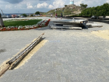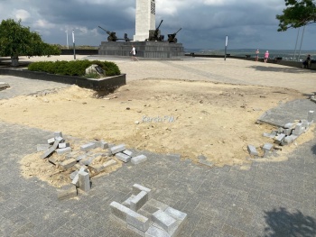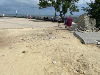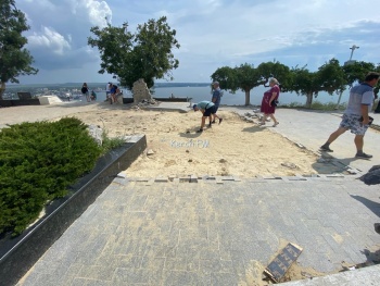 В Керчи на горе Митридат закопали могилу Стемпковского. Однако, уложить плитку и установить обратно бетонные плиты забыли. Туристов на горе встречает не очень красивый вид недавно открытой смотровой площадки на город. Надеемся, что в скором времени здесь все вернут в прежний вид, - передает Керчь.ФМ.