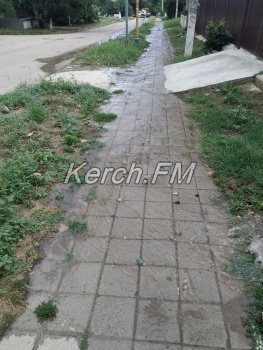 В Керчи 11 августа в переулке Корабельном из люка сильным напором бьет чистая вода, - передает  Керчь.ФМ. Вода залила тротуар и проезжую часть, стекает на другие улицы.