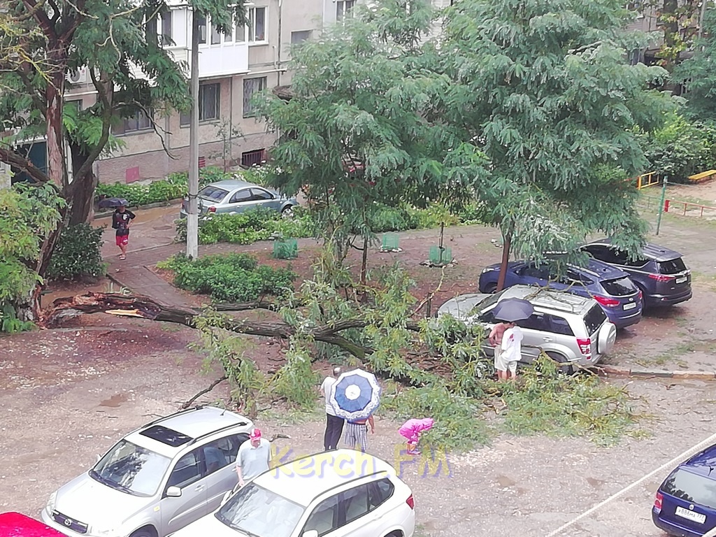 Во дворе жилого дома по улице Орджоникидзе 112 упало дерево, повредив припаркованную машину. Фотографию в редакцию Керчь.ФМ прислали очевидцы.