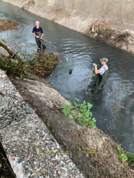 Вручную убирают мусор и вырубают остатки камыша и поросли.