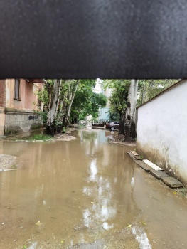 Керчане сообщают, что вода со дворов в центре города не уходит – забиты ливневки