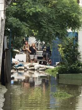 «Помогите. Пролетарская 34. Двор тонет. Пенсионерка 83 года живет два месяца в коридоре в условиях повальных.  Сделали ремонт полов на выделенные городом деньги. Поставили тёплый пол чтоб сушить стены после июньского наводнения. Вода начинает заходить в дома. Кто будет выделять деньги на новый ремонт.  Просим мешки с песком, пену, чтоб залить двери, тк не можем выбраться из двора. Мчс отнекивается более важными делами. Город прекрасно знал, что реки не чистились эти два месяца. Ждали федеральные деньги. Горячей линии нет. Обращаться не к кому. Помогите. И объясните, как поступать в такой ситуации. Окорокова Александра Спиридоновна 1938 года рождения. Живет одна. В городе нет родных», - написала керчанка
