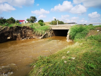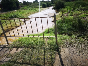 Вечером и ночью шли дожди, поэтому вода еще стекает с оврагов и полей.