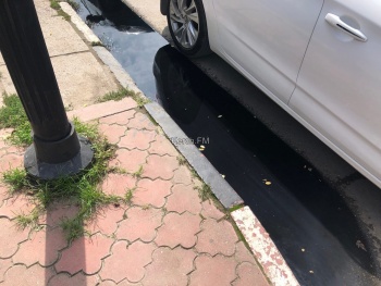 Канализация по улице уже не течет, никаких видимых порывов в этом районе нет. Тем не менее, в ливневке стоит темная жидкость, которая очень сильно воняет и никуда не сходит.