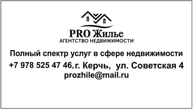 Агентство недвижимости «PRO Жилье» оказывает услуги своим клиентам по всем вопросам, связанным с недвижимостью, каждый сотрудник нашего агентства — это персональный помощник клиента, ориентированный на лучший результат. Мы предлагаем только то, что соответствует вашим желаниям и требованиям, согласитесь - это намного больше, чем просто продажа квадратных метров. В базе агентства только достойные предложения, квартиры и дома в Керчи по объективной цене в удобном для жизни месте, а главное с чистыми и проверенными документами. Только так, не на потоке, а индивидуально как в агентстве недвижимости «PRO Жилье», проникнувшись желанием клиента, нам удается выстраивать долгосрочные доверительные отношения с людьми.