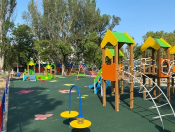 В Керчи на улице Большевистской, около дома №5, скоро откроют для ребятишек новую детскую площадку. Работы по установке элементов завершены. Рабочие постелили новое покрытие, - передает Керчь.ФМ.