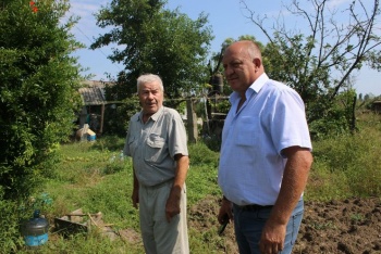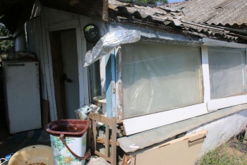 Хозяин домовладения провел руководителя города по придомовому участку, показал разрушения в самом доме. В старом здании от дождевого потока вывалилась часть наружной стены, в жилой комнате обвалился потолок.