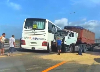 В пресс-службе Упрдор "Тамань" ТАСС добавили, что, по предварительным данным, столкнулись автобус и грузовой автомобиль.