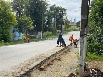 В Керчи 27 августа на улице Курсантов на субботник вышли коммунальщики. Рабочие убирают проезжаю часть, которая ведет на гору Митридат.