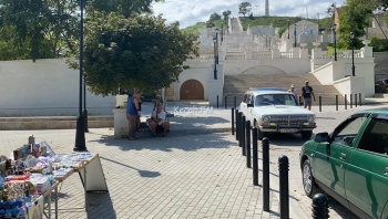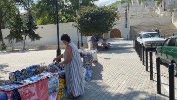 Журналист Керчь.ФМ прошелся к лестнице: и правда, баки без площадки, на новой плитке уже имеются несколько пятен машинного масла. А в сквере и вовсе развернулась стихийная торговля сувенирами. Но это не все: для туристов организовали платные поездки на гору Митридат. Кто не хочет по солнцу подниматься наверх, могут проехать на машине, заплатив водителю.