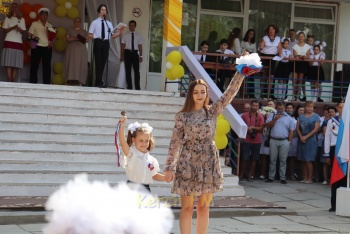 Школа нашла возможность увидеть праздник первоклассников всем родителям, и бабушкам, и дедушкам. Для этого, соблюдая коронавирусные ограничения, площадь перед школой была поделена на секторы. Отдельно от маленьких стояли выпускники 9-х классов, а родители и гости, чтобы не контактировать с детьми, стояли за сигнальной лентой. Видимо поэтому не было никаких конфликтов, и все желающие могли разделить праздник Первого звонка с детьми.