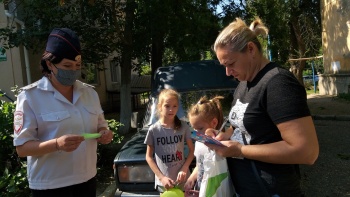 В ходе экскурсии ребята делали остановки и вместе с инспектором ГИБДД разбирали правила поведения в той или иной дорожной ситуации. Таким образом ребята узнали, что во дворе своего дома необходимо быть предельно внимательными: нельзя выбегать из-за угла, кустов или припаркованного транспорта. Далее участники акции подошли к месту, где тротуар пересекает въезд во двор, и для того чтобы заметить выезжающий со двора автомобиль, нужно остановиться и убедиться, что машин нет. Следующей остановкой был нерегулируемый пешеходный переход. «Ребята, помните! Прежде чем начать переход проезжей части, необходимо остановиться, чтобы дать возможность водителю вас вовремя увидеть. Посмотрите по сторонам и убедитесь, что все машины вас пропускают!» - предостерегла детей Елена Ковалева.