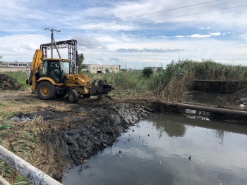 Так, уже несколько дней здесь работает спецтехника, которая расчищает реки. Камыши и ил убирают с помощью большого ковша. Стоит отметить, что при ведении строительных работ по строительству транспортной развязки Буденного-ШГС при разборке путепровода русло реки закидали строительным мусором. Также и по этой причине жители Солдатской слободки не могли ни заехать к себе домой, ни выехать.
