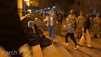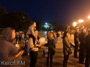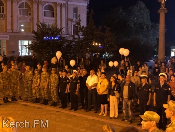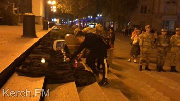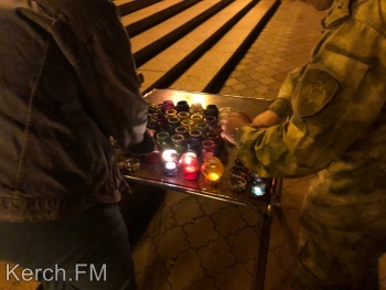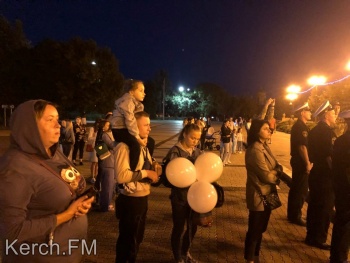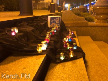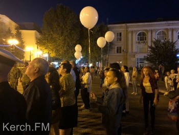 Керчанам продемонстрировали небольшой документальный фильм об освобождении заложников в Беслане в 2004 году. Взрослые и дети возложили свечи на черное расстеленное на ступени полотно. Также, в память о погибших детях во время минуты молчания в небо выпустили белые шары.