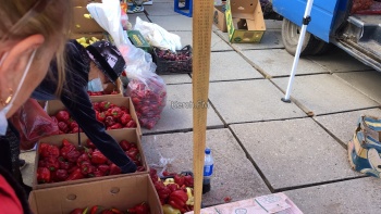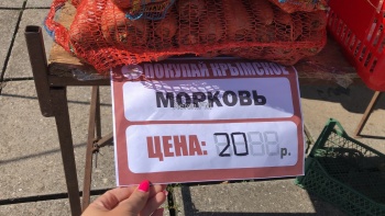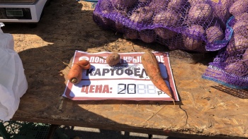 За некоторыми продуктами стоит большая очередь: люди скупают морковку по 15 рублей, раскупили к 10 утра картошку по 20 рублей, стоят в очереди за яйцами по цене 30 и 35 за десяток. Отметим, на всех товарах есть цена.