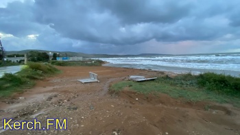 Вчера вечером в Юркино под Керчью у берегов пляжа бушевал сильный шторм. На дороге в село автомобили качало из стороны в сторону, ветер был настолько сильный, что птиц просто сдувало. По данным метеосайтов скорость ветра достигала 13 м/с. Из-за сильных волн затопило часть берега, где в основном отдыхают люди. А от кабинок для переодевания остались лишь доски с торчащими гвоздями, — передает Керчь.ФМ.