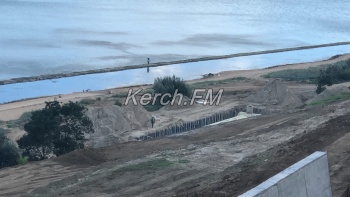 Так, рабочие завершили забивку свай и доваривают арматурные каркасы. На такие каркасы ставят специальные щиты с помощью техники, а уже их заливают бетоном. Большие резервуары для сбора воды уже установлены ближе к берегу.