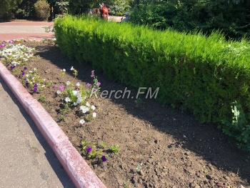 В сквере Славы в Керчи еще в июле начали сохнуть цветы. К августу высохли целые участки, но никто не спешил убирать сухостой. В сентября, зеленхоз увидел сухие растения и все таки решил убрать их, - передает Керчь.ФМ.