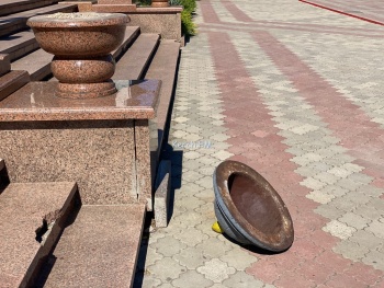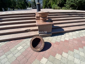 В Керчи на улице Ленина сломали один вазон. Одна его часть лежит на пешеходной дорожке. Об этом Керчь.ФМ сообщили постоянные читатели. Керчане отметили, что на многих вазонах не хватает золотых шишек.