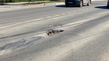 В Керчи на улице Чкалова, в районе дома №61, на дороге образовалась глубокая яма. В нее на протяжении месяца въезжают автомобили. Как Керчь.ФМ рассказал один из водителей, что он в этой яме повредил диск и колесо своей машины.