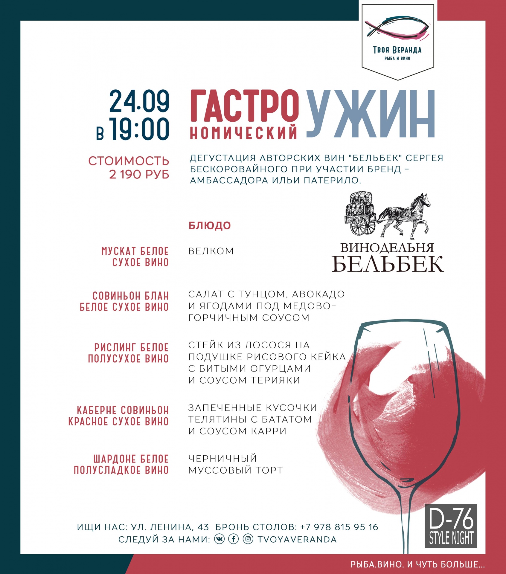 Гастрономический ужин и дегустация авторских крымских напитков «Бельбек» Сергея Бескоровайного на Твоей Веранде. Рыба и Вино - интересно, познавательно и очень вкусно!